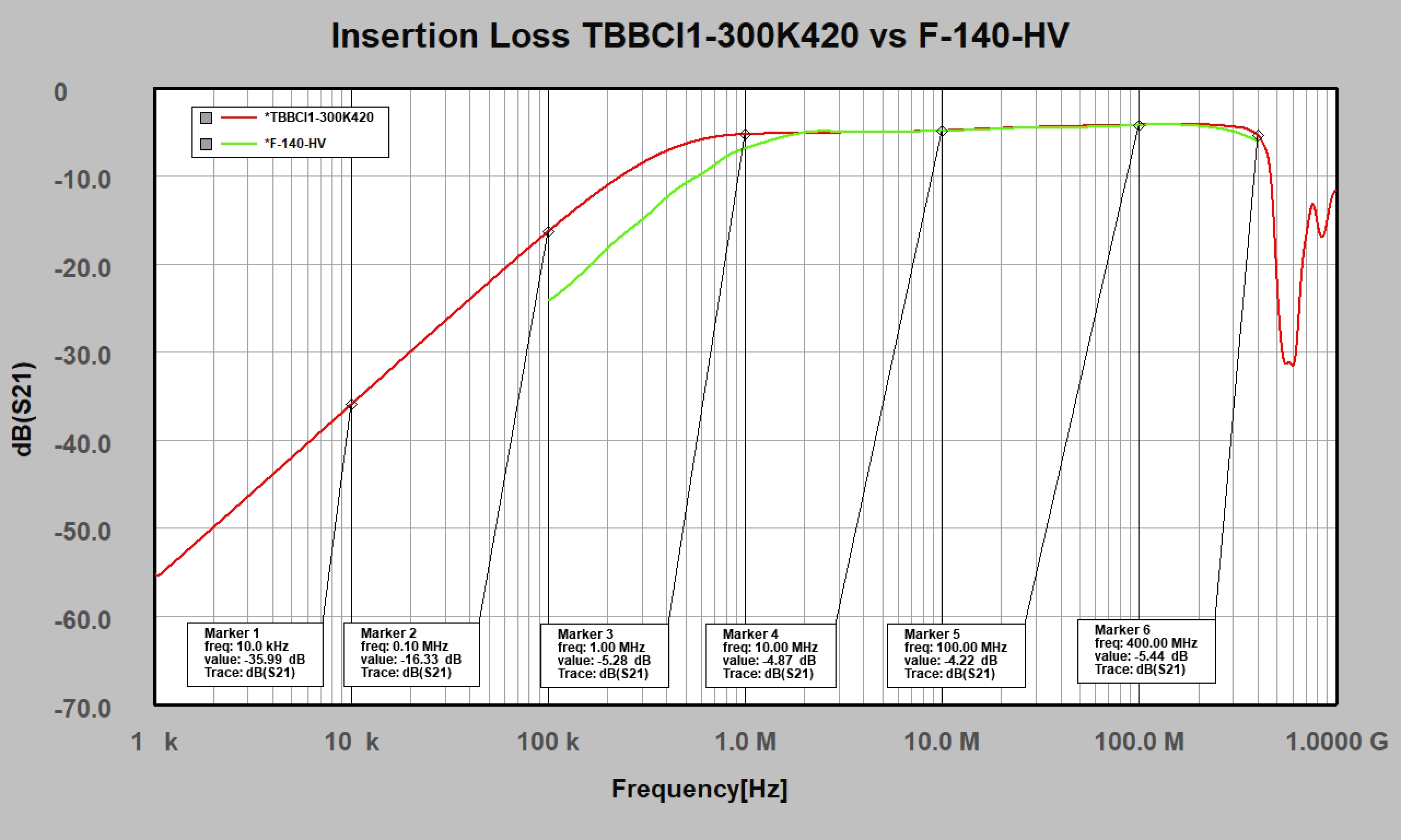 TBBCI1-300K420在其大部分带宽内插入损耗为5dB。该探头经过单独校准,可在10KHz至450 MHz的频率范围内使用。可用于注入 I级(60mA)、II级(100mA)、III级(150mA)、IV级(200 mA)以及客户特定的V级(350mA)的严重程度等级。